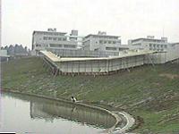 オメガ館の終わったあたりから池の斜面を下り、水辺ぎりぎりに生協前のテラスに続く幅1間ほどの板張りの仮設通路が続いていた。そこをまずは小教室・研究棟のあるカッパ、エプシロンのあたりに向かう。これが朝の全学生と教員の唯一の行軍進路である。