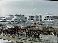 キャンパスの中に工事現場がある、というのはどこでもよくある光景だが、当時のSFCはそんなものではなく、工事現場の間をぬって勉学の環境がある、といった状況だった。何があっても1990年度4月をもって開設せよという文部省からの指令がある以上仕方がない。どこが完成していて、どこが工事現場だったか、といった説明をしてみてもあまりイメージがわかないだろうから、正面の階段を登るところから初年度へのタイムスリップキャンパスツアーを始めてみよう。