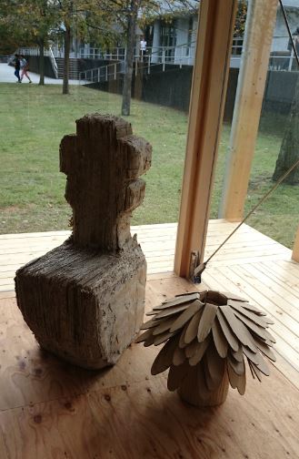 引き続き内覧会と今後の建築の仕上げ材などの展示が行われ、多くの学生、教職員が、真新しく見通しの良い室内を見学し、広い縁側でくつろぐ姿も見られました。