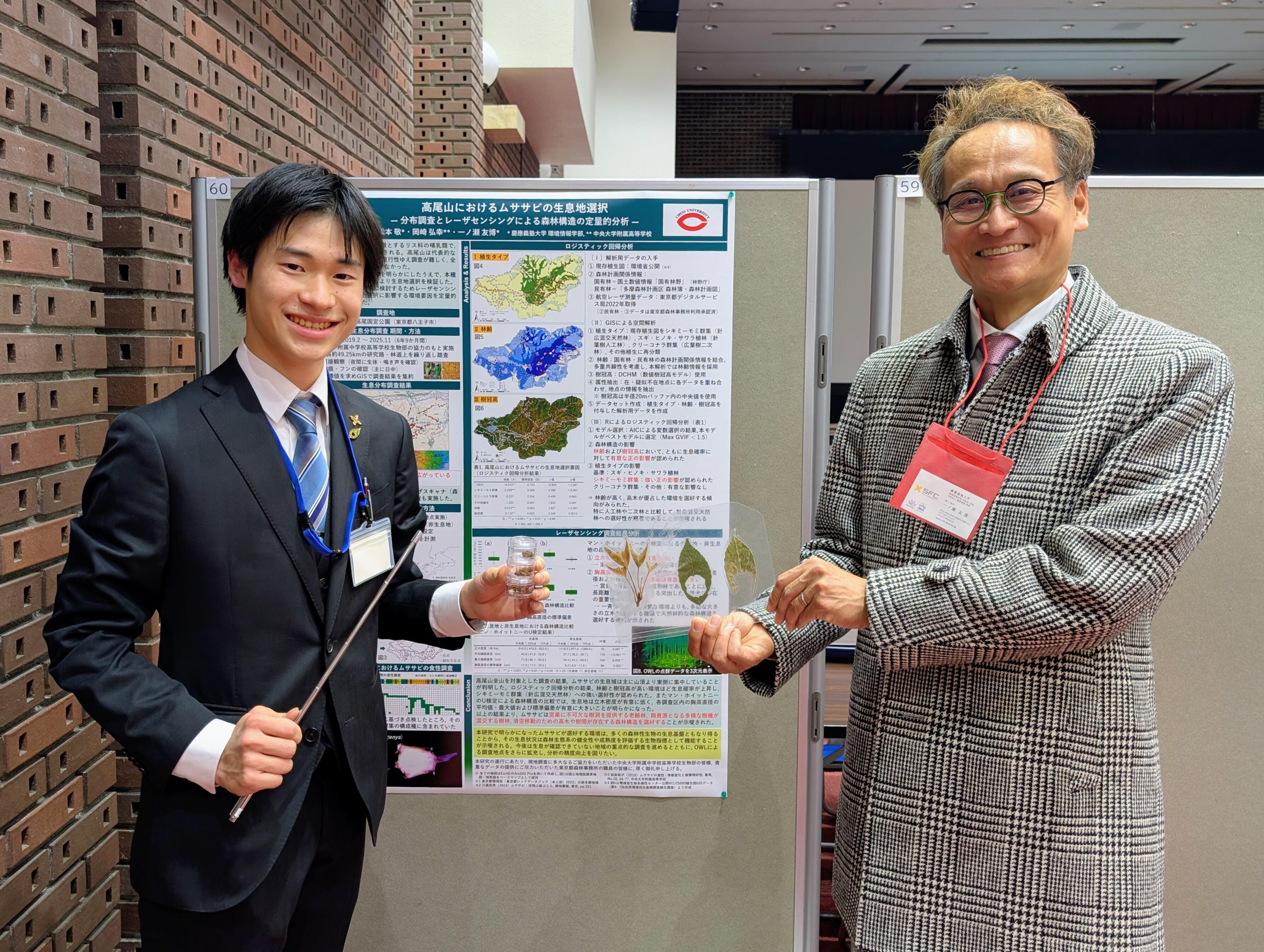 環境情報学部教授 一ノ瀬友博研究室所属の松本敬さん(環境情報学部2年)が、2025年度(第22回)環境情報科学 研究発表大会 ポスターセッション【大学生・大学院生の部】で「理事長賞」を受賞しました。